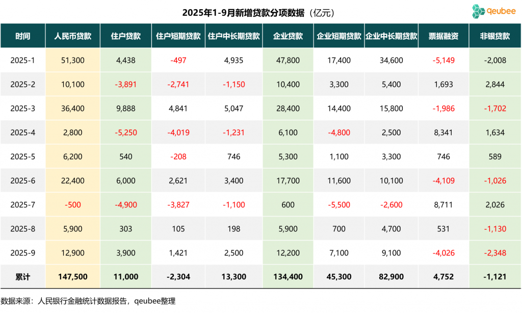 2025年10月15日,央行公布了2025年前三季度的社融与信贷数据,通过计算可得到9月单月社融与信贷数据,9月贷款增量数据环比8月继续改善,无论是票据融资还是非银贷款都出现了明显的压降。