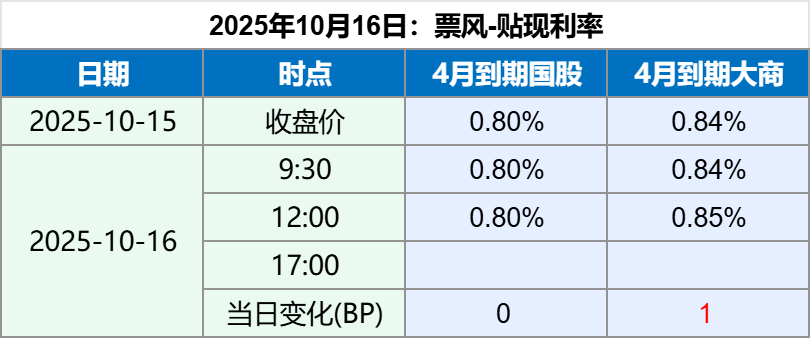 2025年10月16日 2025年10月16日,上午票据贴现利率稳定,最新票据贴现利率如下: 备注:上述票据贴现价格全国可贴,无需重新开户。 如果您觉得上述贴现价格符合您的要求,可以扫描下方二维码联系我们。 文章导航 9月信贷环比改善,票据融资压降4000亿元