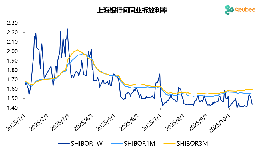 10月资金面尽管月末略有收紧,但总体依然较为宽松,7天SHIBOR利率前低后高,整体略高于7天逆回购利率1.40%,3个月以上期限的SHIBOR利率因跨年小幅上行。