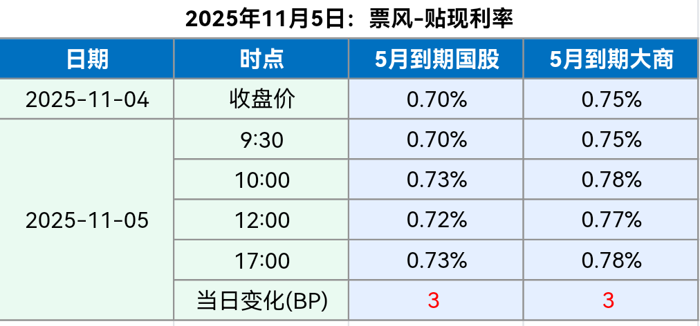 2025年11月5日 2025年11月5日,早盘票据贴现利率小幅上涨,上午略有回落,下午继续上涨,最新票据贴现利率如下: 备注:上述票据贴现价格全国可贴,无需重新开户。 如果您觉得上述贴现价格符合您的要求,可以扫描下方二维码联系我们。 文章导航 2025年11月4日票据贴现利率