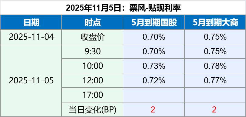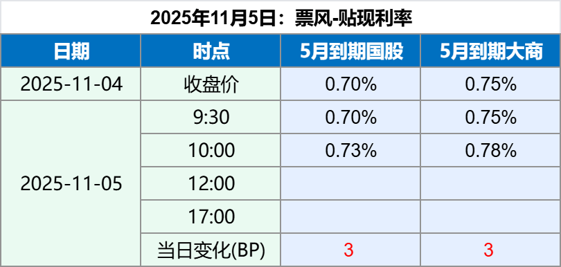 2025年11月5日 2025年11月5日,早盘票据贴现利率略有上升,最新票据贴现利率如下: 备注:上述票据贴现价格全国可贴,无需重新开户。 如果您觉得上述贴现价格符合您的要求,可以扫描下方二维码联系我们。 文章导航 2025年11月4日票据贴现利率