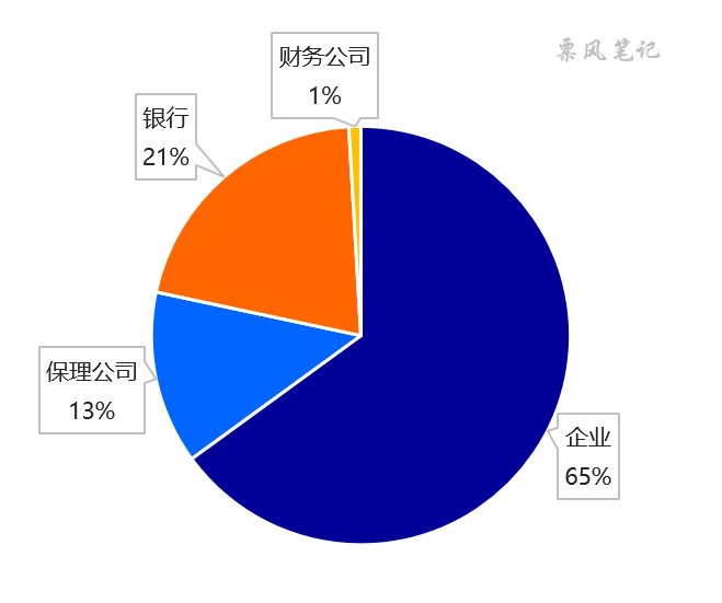 从这217家应收账款凭证平台的运营机构来看,企业141家、保理公司29家、银行45家、财务公司2家,企业、银行、保理公司是最主要的三类运营方。运营机构类型分布如下: