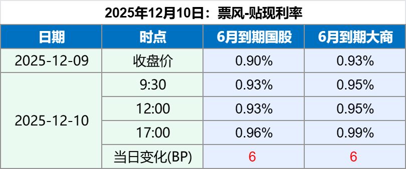 12 月 10, 2025 票据日内直贴报价