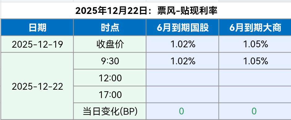 2025年12月22日 2025年12月22日,早盘票据贴现利率稳定,最新票据贴现利率如下: 备注:上述票据贴现价格全国可贴,无需重新开户。 如果您觉得上述贴现价格符合您的要求,可以扫描下方二维码联系我们。 文章导航 2025年12月19日票据贴现利率