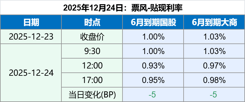 2025年12月24日 2025年12月24日,早盘票据贴现利率稳定,上午大幅下行,下午小幅回升,最新票据贴现利率如下: 备注:上述票据贴现价格全国可贴,无需重新开户。 如果您觉得上述贴现价格符合您的要求,可以扫描下方二维码联系我们。 文章导航 2025年12月23日票据贴现利率