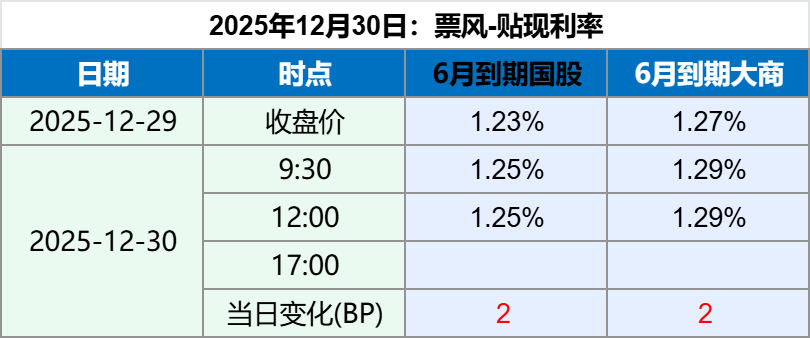 2025年12月30日 2025年12月30日,早盘票据贴现利率略有上升,上午保持稳定,最新票据贴现利率如下: 备注:上述票据贴现价格全国可贴,无需重新开户。 如果您觉得上述贴现价格符合您的要求,可以扫描下方二维码联系我们。 文章导航 2025年12月29日票据贴现利率