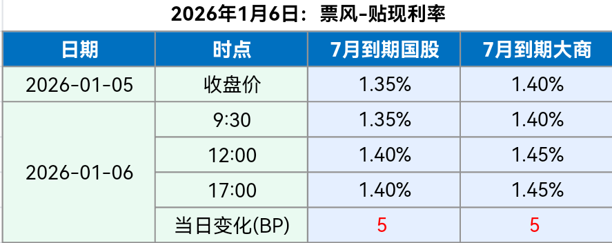2026年1月6日 2026年1月6日,早盘票据贴现利稳定,上午大幅上升,下午维持稳定,最新票据贴现利率如下: 备注:上述票据贴现价格全国可贴,无需重新开户。 如果您觉得上述贴现价格符合您的要求,可以扫描下方二维码联系我们。 文章导航 2025年12月比亚迪再签发45亿元商票 2026年1月7日票据贴现利率