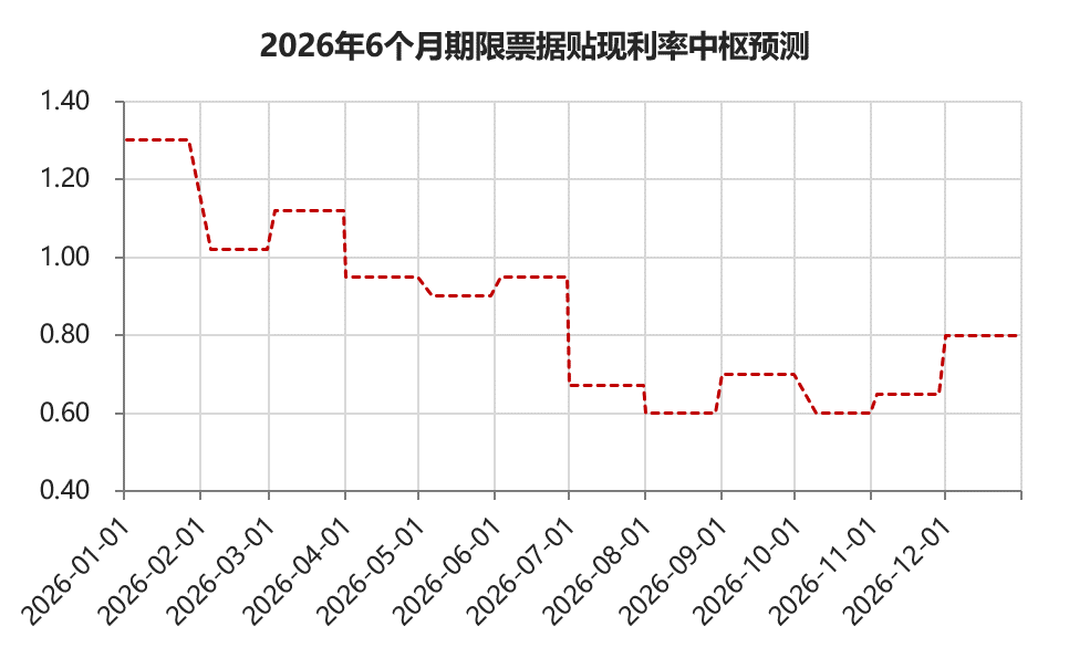 如果2026年社融增量变化依然和2025年相似的话,我们预计2026年票据贴现利率中枢的走势大体如下: