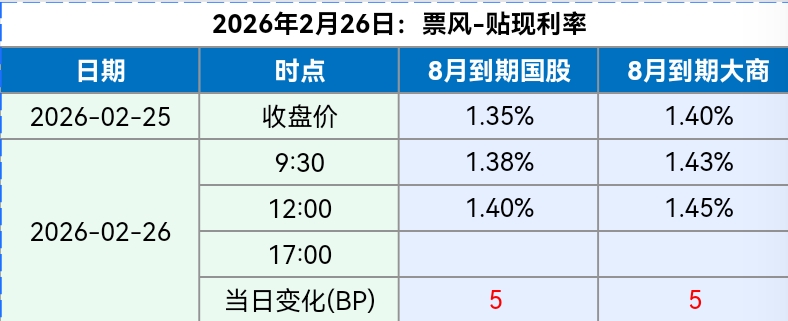 2026年2月26日 2026年2月26日,早盘票据贴现利率小幅上行,最新票据贴现利率如下: 备注:上述票据贴现价格全国可贴,无需重新开户。 如果您觉得上述贴现价格符合您的要求,可以扫描下方二维码联系我们。 文章导航 2026年2月25日票据贴现利率