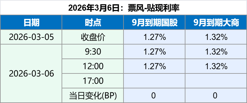 2026年3月6日,上午票据贴现利率稳定,最新票据贴现利率如下: