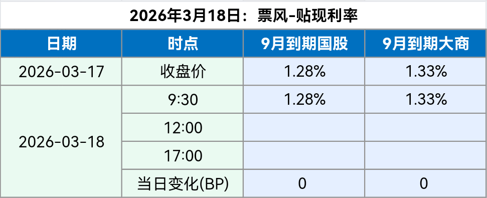 2026年3月18日 2026年3月18日,早盘票据贴现利率稳定,最新票据贴现利率如下: 备注:上述票据贴现价格全国可贴,无需重新开户。 如果您觉得上述贴现价格符合您的要求,可以扫描下方二维码联系我们。 文章导航 2026年3月17日票据贴现利率