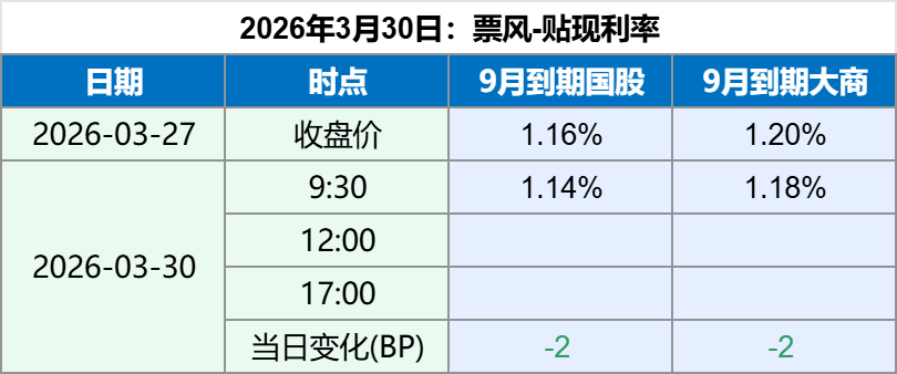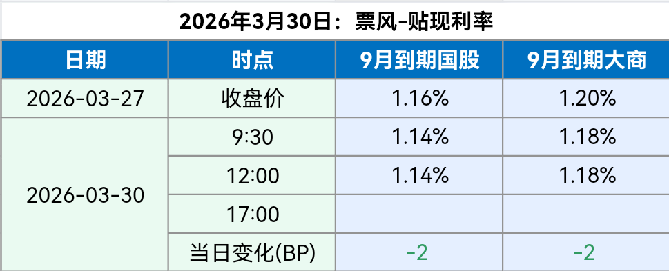 2026年3月30日 2026年3月30日,早盘票据贴现利率小幅下行,最新票据贴现利率如下: 备注:上述票据贴现价格全国可贴,无需重新开户。 如果您觉得上述贴现价格符合您的要求,可以扫描下方二维码联系我们。 文章导航 2026年3月27日票据贴现利率