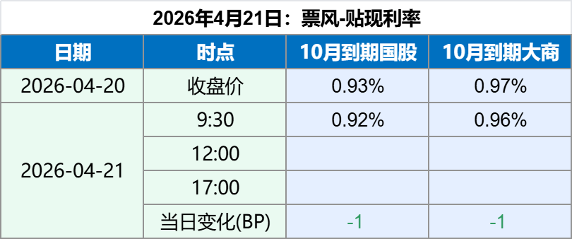 2026年4月21日 2026年4月21日,早盘票据贴现利率略有下行,最新票据贴现利率如下: 备注:上述票据贴现价格全国可贴,无需重新开户。 如果您觉得上述贴现价格符合您的要求,可以扫描下方二维码联系我们。 文章导航 2026年4月20日票据贴现利率 一季度银票承兑市场分析:集中度提升