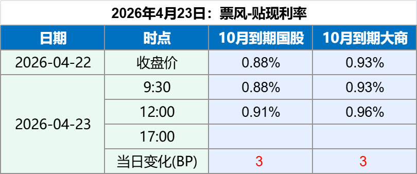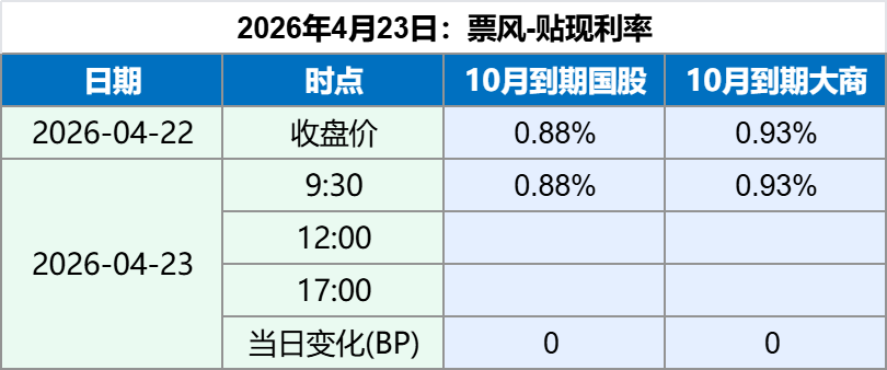 2026年4月23日 2026年4月23日,早盘票据贴现利率稳定,最新票据贴现利率如下: 备注:上述票据贴现价格全国可贴,无需重新开户。 如果您觉得上述贴现价格符合您的要求,可以扫描下方二维码联系我们。 文章导航 2026年4月22日票据贴现利率